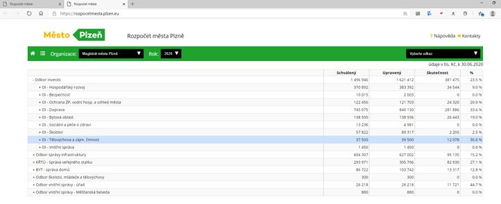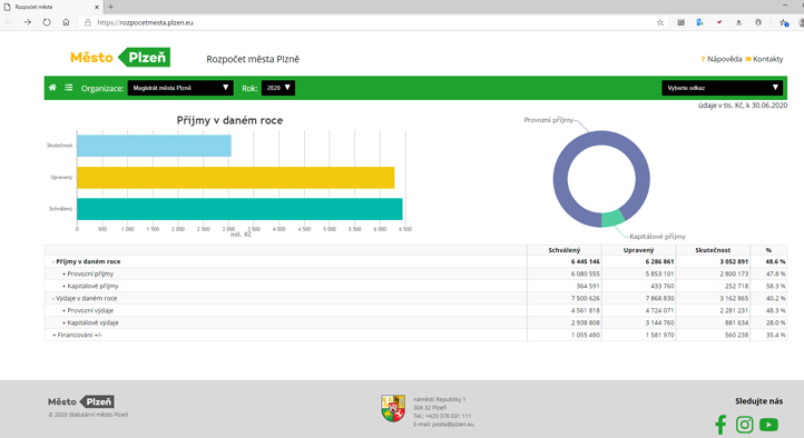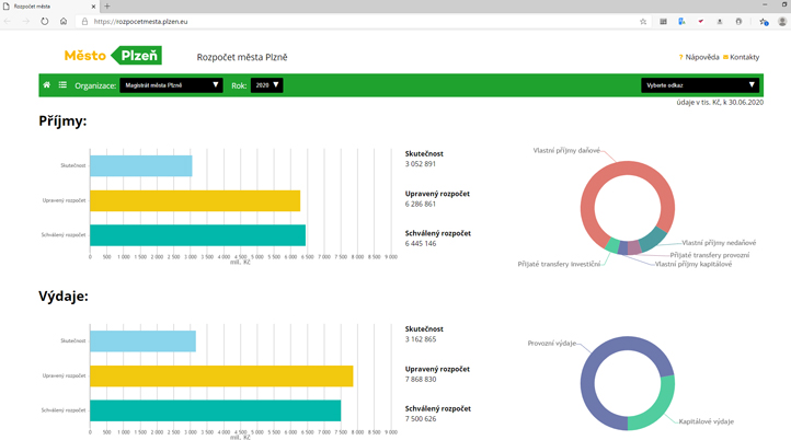 A transparent and open local government – this is what launching of the new Clickable Budget application is about. It offers any citizen a detailed overview of the city’s finances, updates data on a monthly basis and provides a complete overview of revenues and expenditures of the regional capital, graphic presentations of individual budget items implementation without omitting, for example, details of individual investment projects including information on deadlines, suppliers etc. From 20th June 2020, the budget is available at: https://rozpocetmesta.plzen.eu. The search function in the new application is simple and intuitive.